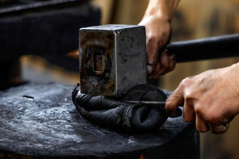 Một nghệ nhân chế tác thỏi mực.