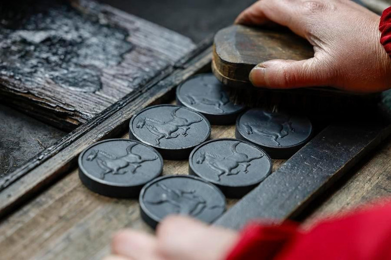 Ảnh chụp các thỏi mực Huy Châu lấy cảm hứng từ năm Ngựa theo Hoàng đạo Trung Quốc.