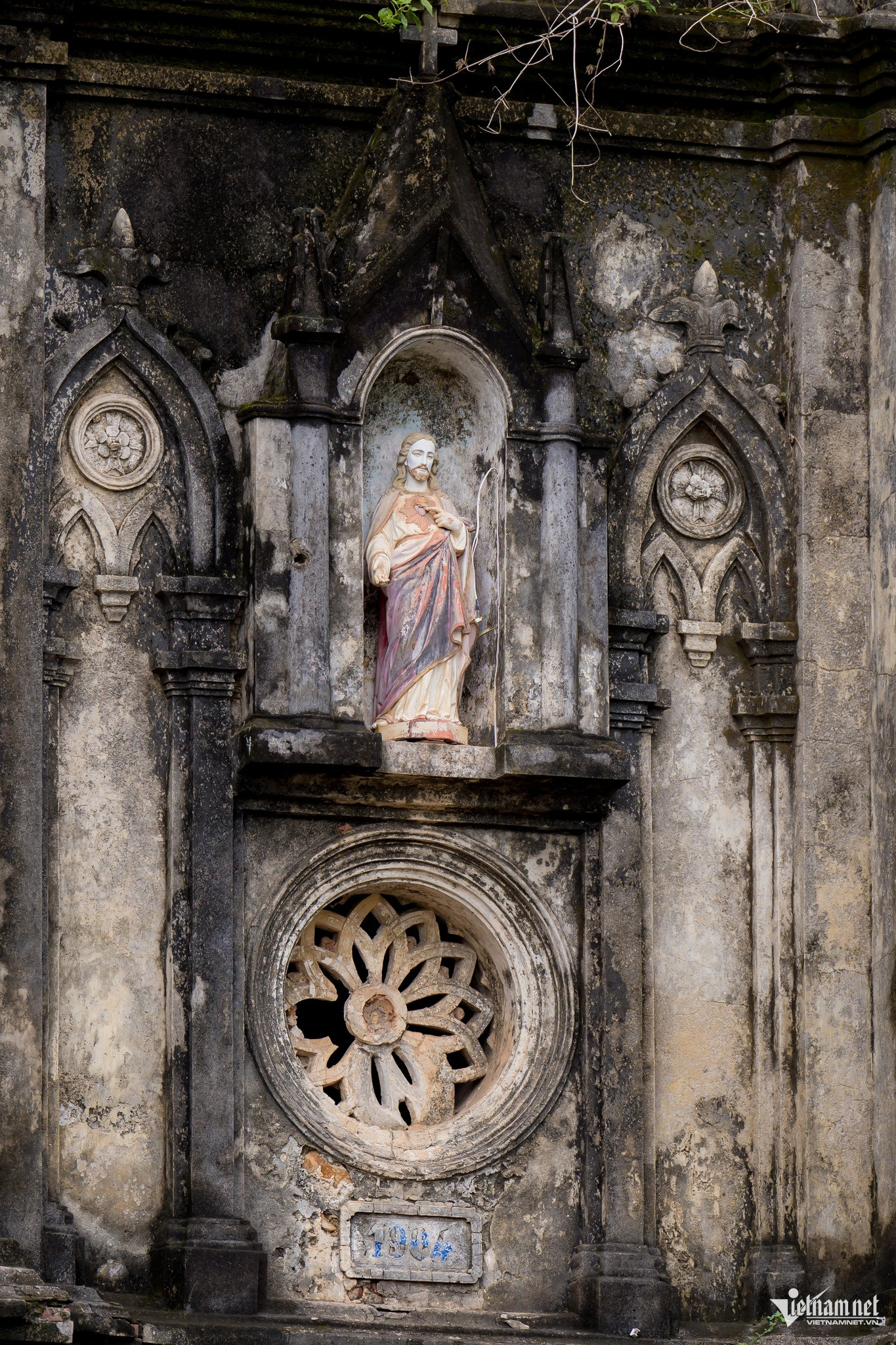Phía trước nhà thờ là tượng Thánh Tâm Chúa. Pho tượng gắn liền với thời gian xây dựng nhà thờ.