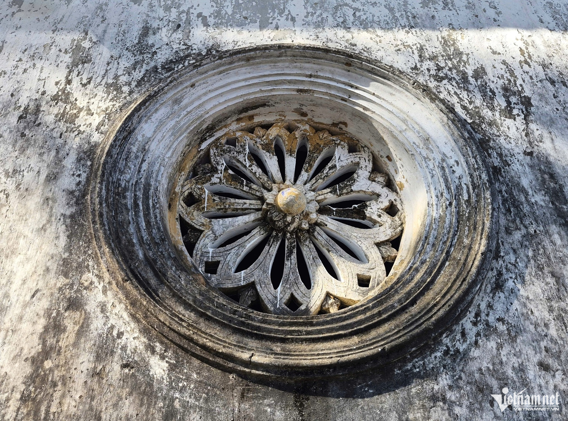 Trần phía trên Cung thánh được làm bằng gỗ. Nhiều chi tiết gỗ được sơn son thếp vàng.