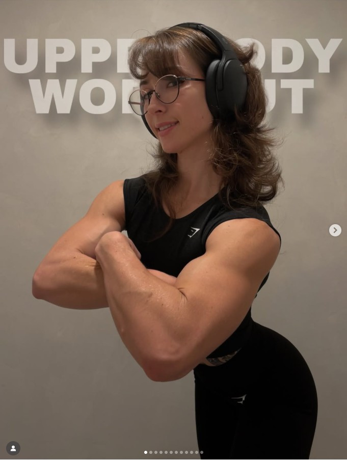 Các video tập luyện của cô tập trung vào tay, vai, lưng và core, thường thu hút hàng chục triệu lượt xem.