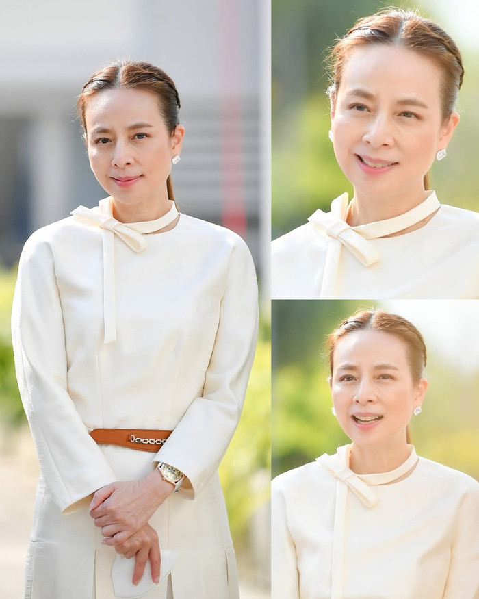 Điểm mạnh trong lựa chọn của Madam Pang là sự kết hợp hài hòa giữa các yếu tố truyền thống Thái Lan (ren, sheer) với thiết kế hiện đại, tạo nên hình ảnh chỉn chu nhưng không gượng ép. Dù đôi khi có thể hơi thiên về sự trang trọng hoặc phụ thuộc nhiều vào phụ kiện điểm nhấn. Nhìn chung, đây là một phong cách dễ tiếp cận, có tính ứng dụng cao và phản ánh rõ nét xu hướng thời trang Thái Lan đương đại. Ảnh: FBNV