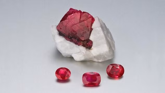 Điều làm nên danh tiếng toàn cầu của corundum lại không nằm ở dạng “thô” mà ở các biến thể màu sắc tuyệt đẹp. Khi tinh khiết, corundum gần như không màu; nhưng chỉ cần một lượng nhỏ tạp chất kim loại, nó biến đổi ngoạn mục. Chromium tạo ra sắc đỏ rực rỡ của ruby, trong khi sắt và titan mang đến sắc xanh sâu thẳm của sapphire. Ngoài ra, corundum còn có thể xuất hiện dưới nhiều màu khác như vàng, hồng, tím, thậm chí là không màu hoàn toàn – mỗi biến thể đều mang giá trị thẩm mỹ riêng.
