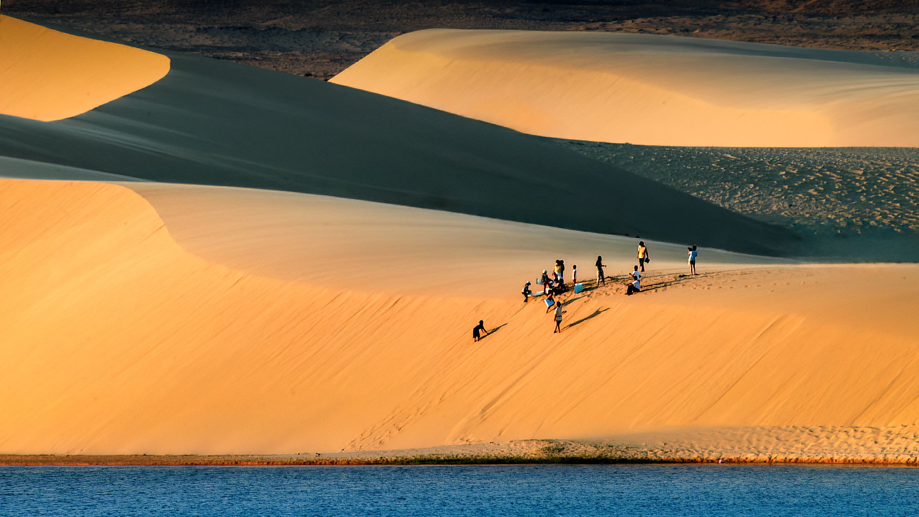 Khách tham quan trên Đồi cát ở Bàu Trắng