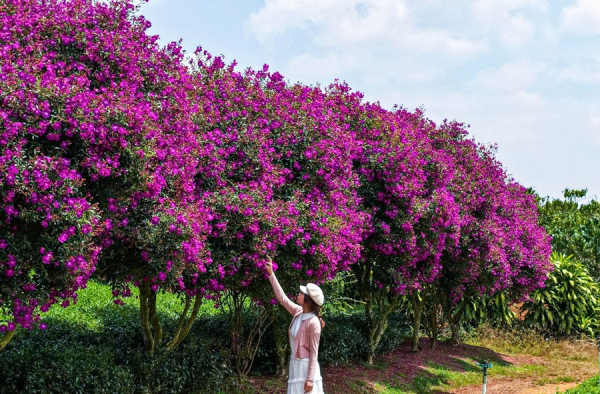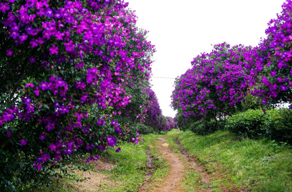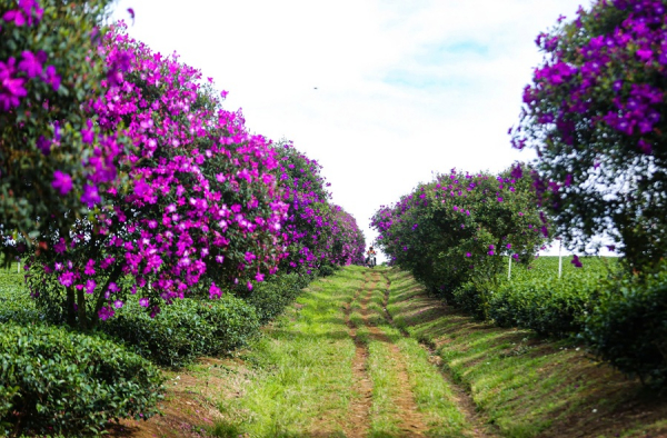 Trên diện tích hơn 30ha chè, hơn 300 gốc hoa mua tím được trồng dọc theo bờ bao và hành lang đường nội bộ của nông trường. Những gốc hoa này đã được chăm sóc hơn 10 năm, sinh trưởng tốt và mỗi dịp đầu năm lại bung nở rực rỡ, trở thành “điểm hẹn” quen thuộc của du khách.