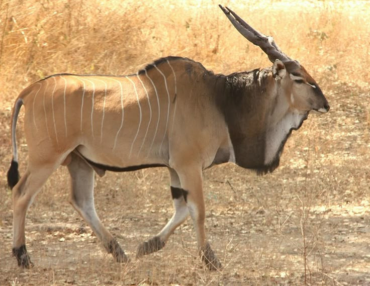 Là loài linh dương lớn nhất thế giới. Một con linh dương sừng xoắn đực trưởng thành có thể cao hơn 1,8 m và nặng tới 1 tấn. Ảnh: Pinterest.