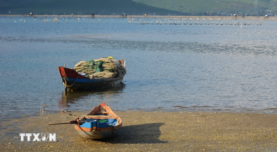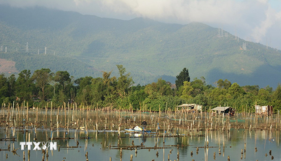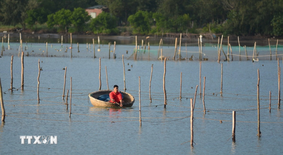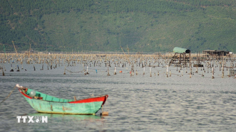 Người dân địa phương nuôi hàu trên đầm Lập An. (Ảnh: Văn Dũng/TTXVN)
