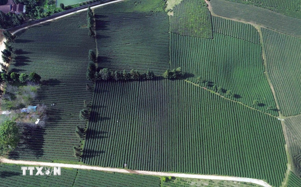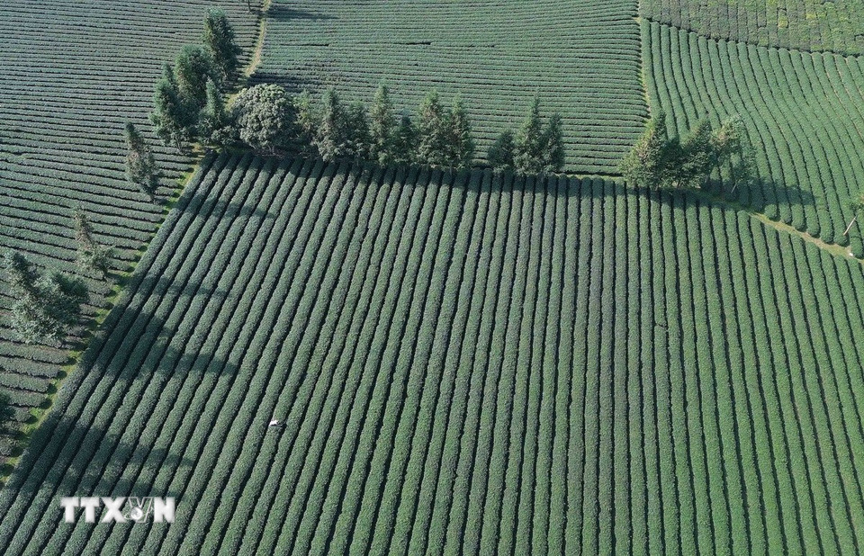 Cây chè đã tạo việc làm ổn định cho nhiều lao động và góp phần xóa đói giảm nghèo, phát triển kinh tế-xã hội ở địa phương. Những nương chè là bức tranh xanh mướt trải dài, uốn lượn trên khắp các triền đồi, tạo khung cảnh lãng mạn, thơ mộng, bình yên. (Ảnh: Quang Quyết/TTXVN)