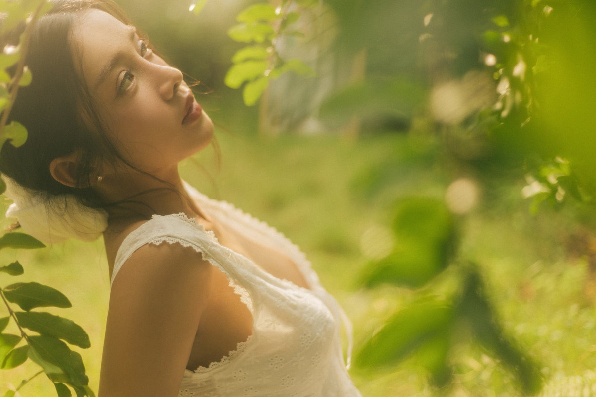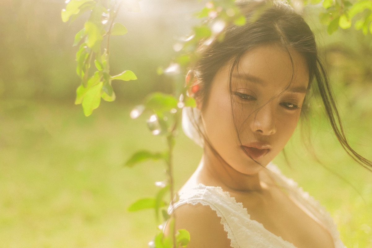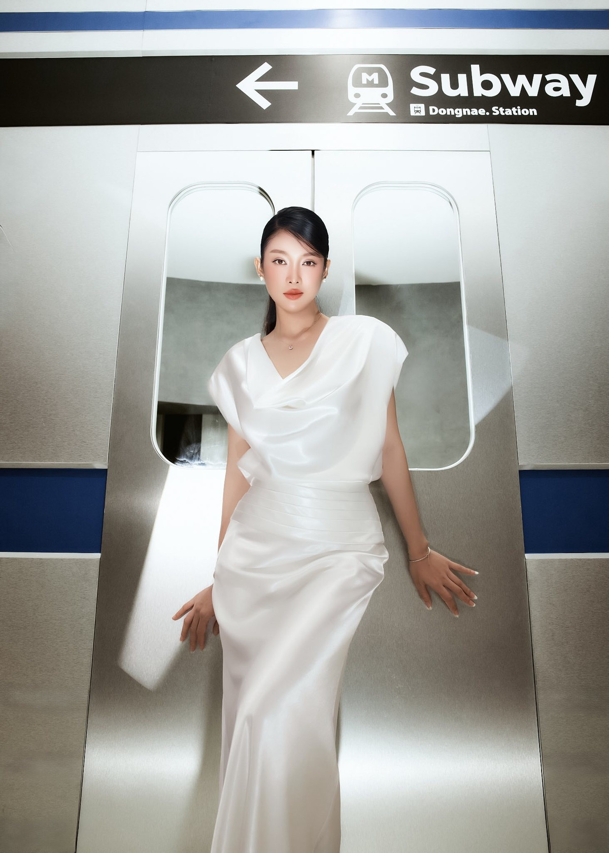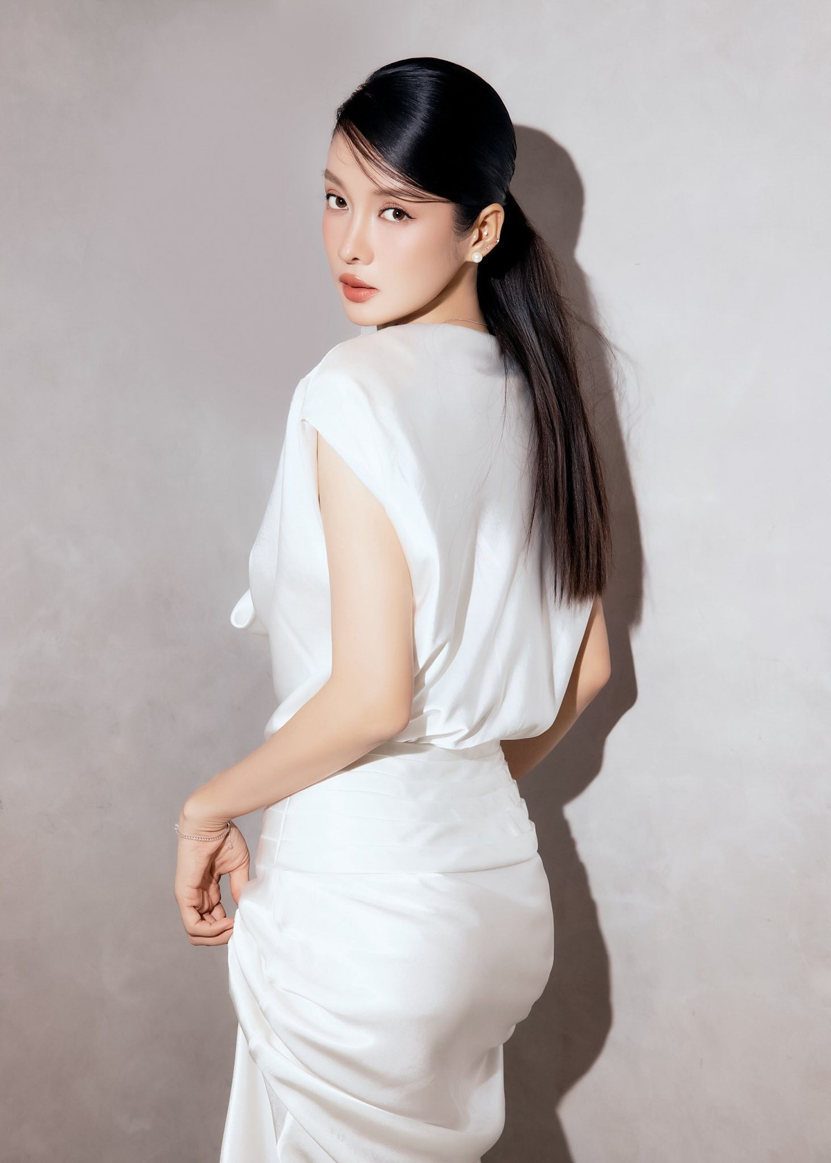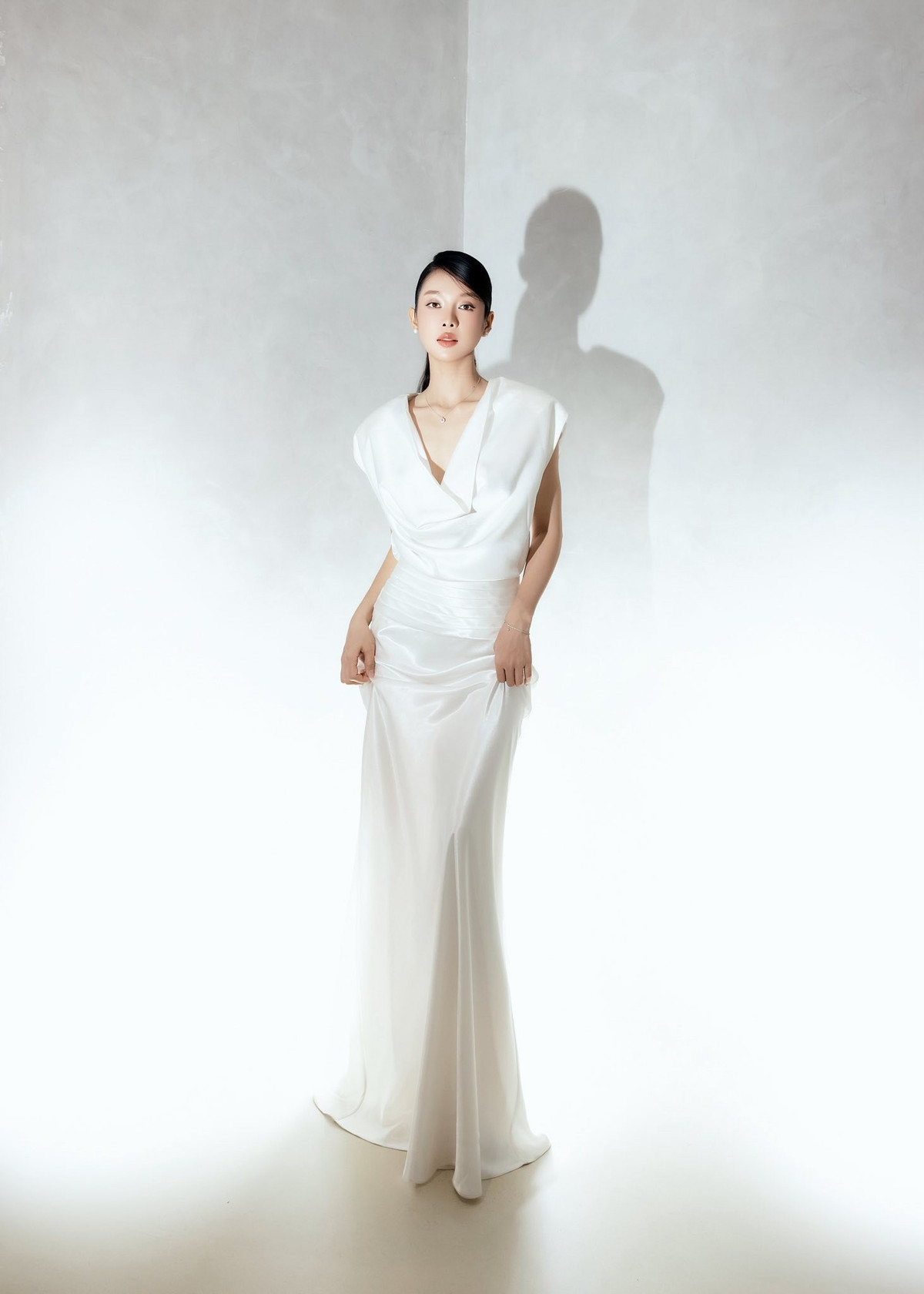 Khuôn mặt của cô được tôn lên với lối trang điểm tự nhiên. Ánh nhìn xa xăm và những góc nghiêng đầy tinh tế khiến tổng thể bộ ảnh trở nên giàu cảm xúc, mang hơi hướng lãng mạn kiểu Hàn.