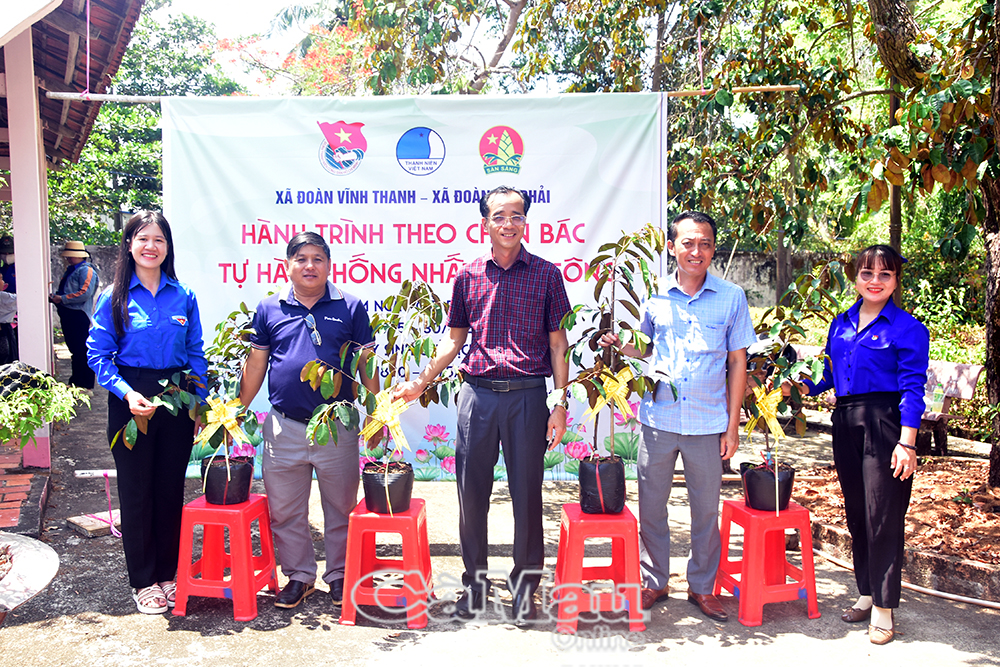 Xã đoàn Trí Phải tặng cây vú sữa chiết ghép từ cây gốc gửi Bác Hồ năm 1954 cho lãnh đạo xã Vĩnh Thanh.