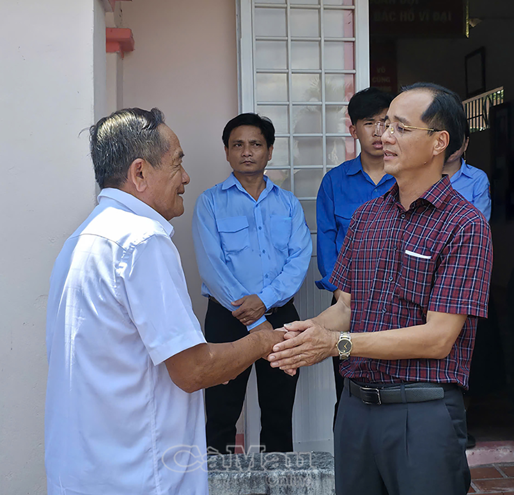 Bí thư Đảng ủy xã Vĩnh Thanh Ngô Nguyên Phong tri ân cựu chiến binh Nguyễn Văn Dậu đã truyền cảm hứng cho thế hệ trẻ.