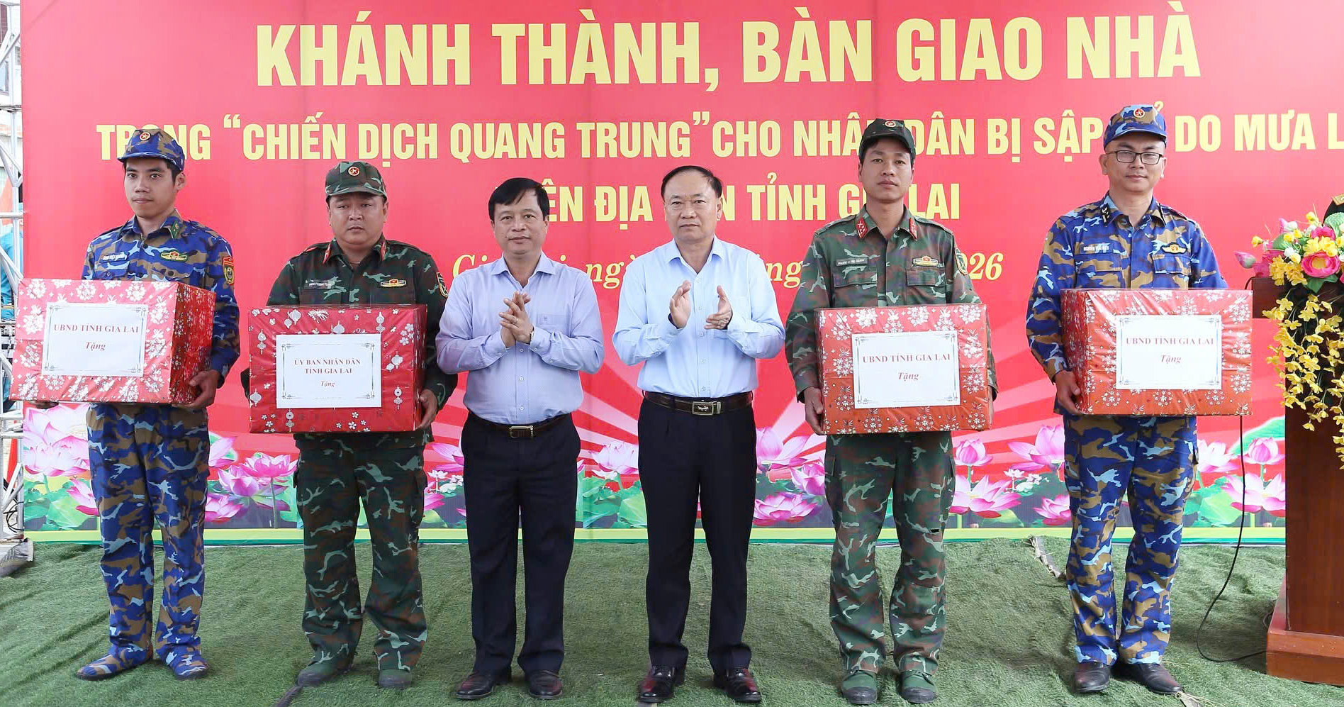 Thay mặt lãnh đạo tỉnh, Phó Chủ tịch Thường trực UBND tỉnh Gia Lai Nguyễn Tuấn Thanh cảm ơn Quân khu 5, Quân đoàn 34, Vùng 3 Hải quân, Hải đoàn Biên phòng 48 cùng cán bộ, chiến sĩ đã vượt khó, làm việc với tinh thần trách nhiệm cao, giúp nhân dân vùng bão lũ dựng lại mái nhà, ổn định cuộc sống sau thiên tai.