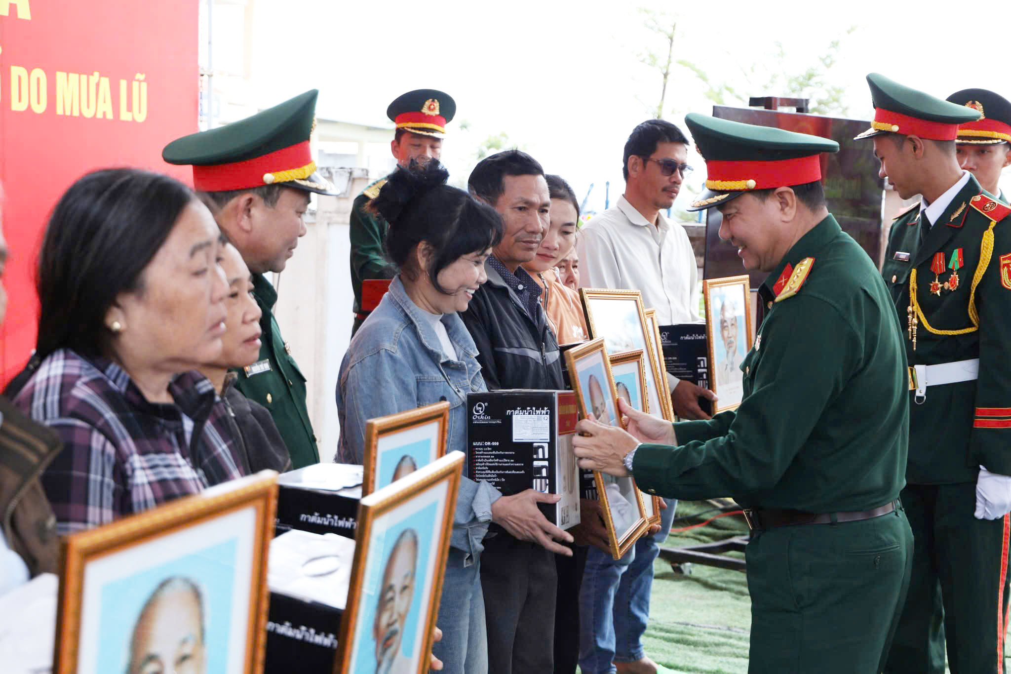 Dịp này, lãnh đạo các đơn vị đã trao tặng nhiều phần quà, vật dụng thiết yếu cho các gia đình vừa được xây dựng lại nhà mới sau bão lũ.