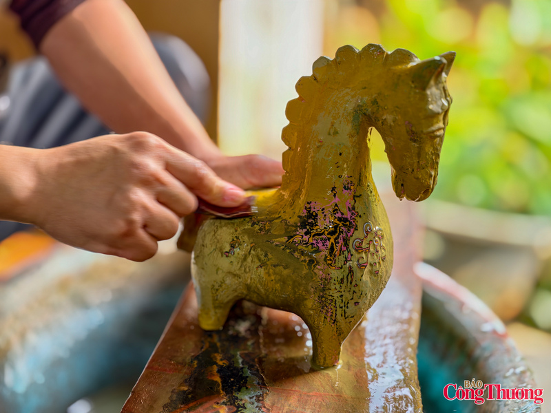 Trong không gian cổ kính của làng cổ Đường Lâm, hình ảnh những chú ngựa sơn mài ánh lên sắc thời gian và hơi thở đương đại, như cuộc đối thoại tinh tế giữa truyền thống và sáng tạo mới.
