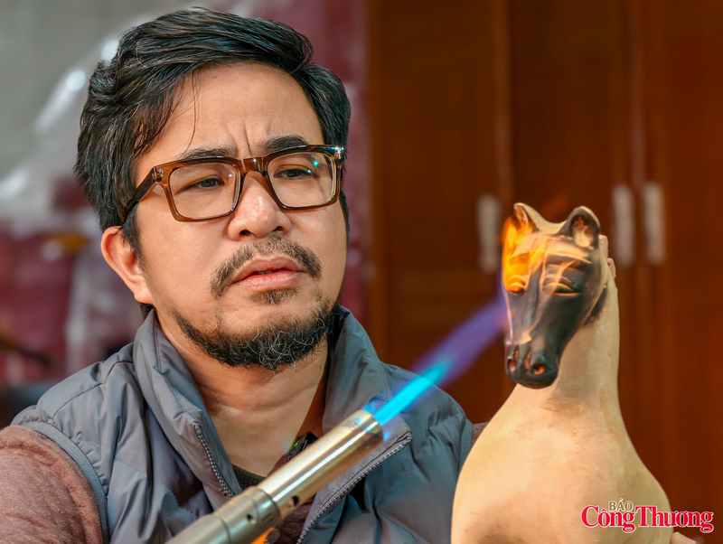 Nghệ nhân Nguyễn Tấn Phát bên bộ sưu tập 2026 chú ngựa đón xuân.