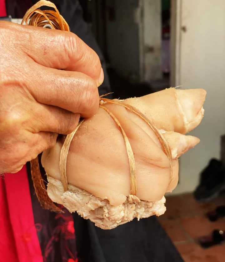 Trong cỗ khao lão tại làng Diệc còn có món chân giò giả ba ba hay mọc hấp trông giống mai con rùa với hàm ý được sống trường thọ.