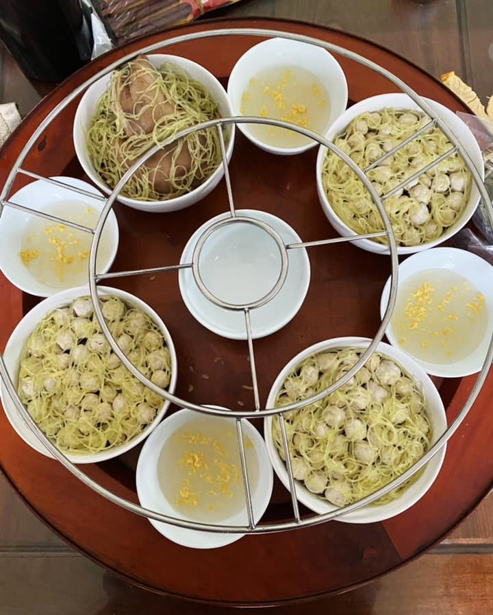 Mâm cỗ lên lão nhất định phải là cỗ 2 tầng với 8 món và 14 đĩa. Trong đó, mâm tầng 1 thường có một đĩa nem thính, hai bát mộc nấu, 4 bát chè đỗ.