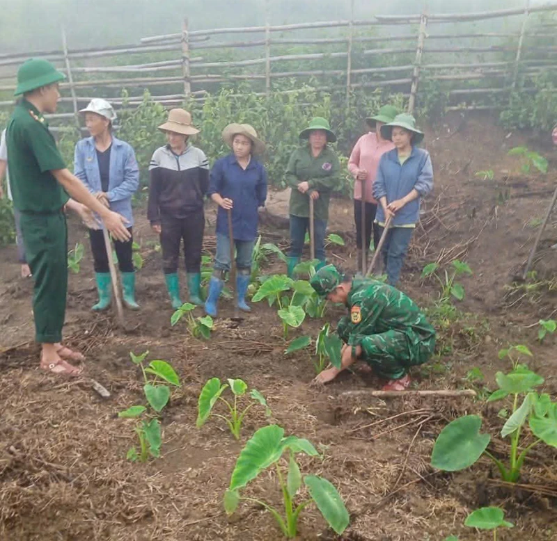 Bộ đội biên phòng giúp người dân bản Ché Lầu trồng khoai mán ruột vàng.