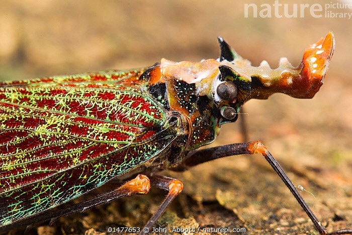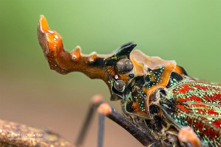 Đầu “hình rồng” độc đáo. Chiếc đầu kéo dài như mõm rồng là đặc điểm dễ nhận biết nhất, khiến ve sầu đầu rồng trở thành loài côn trùng nổi bật nhất rừng mưa Trung Mỹ. Ảnh: Pinterest.