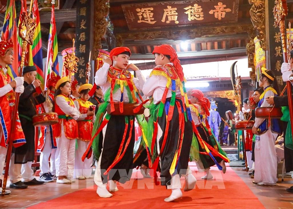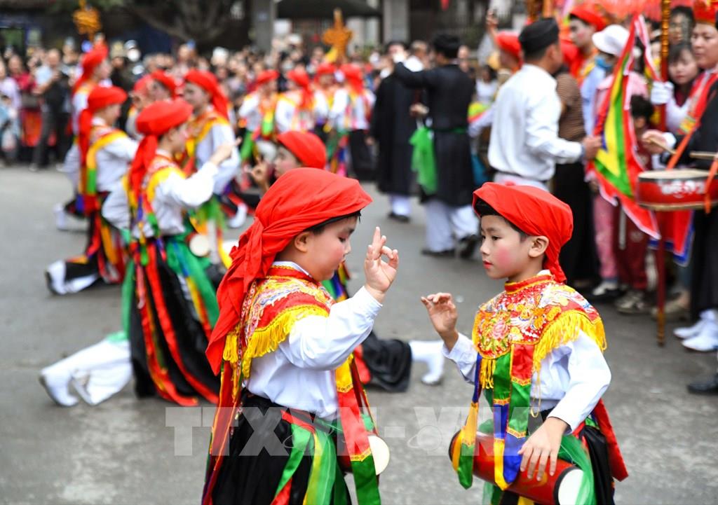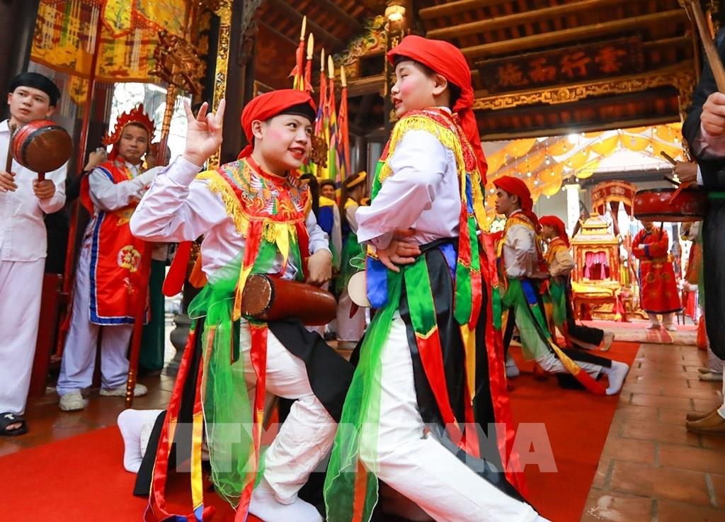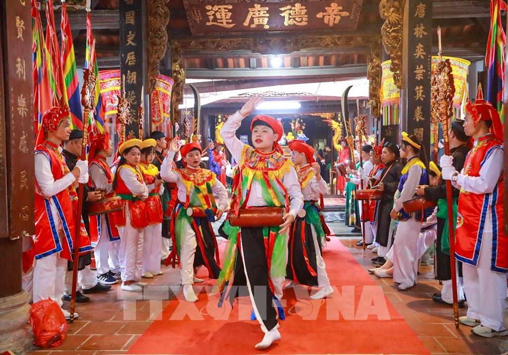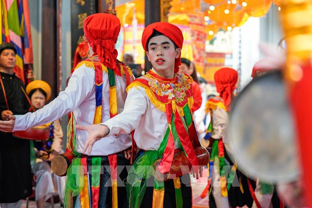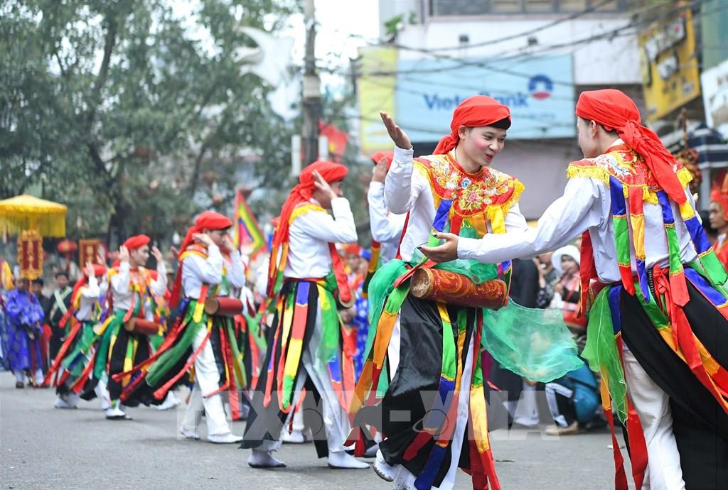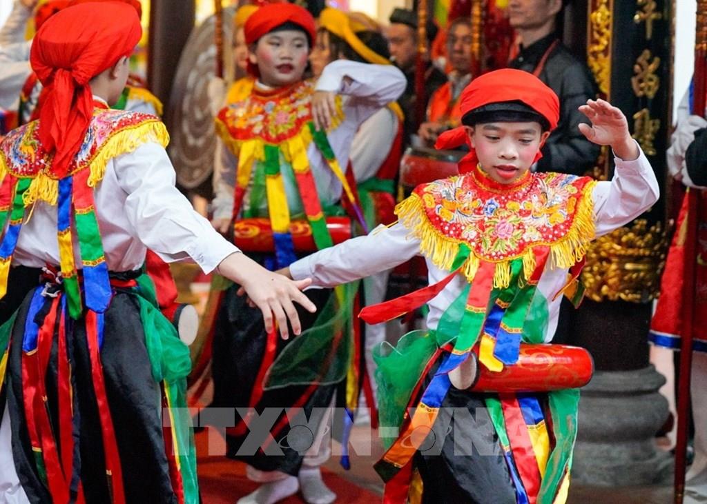 Đây được xem là một trong những điệu múa dân gian tiêu biểu của vùng đất Thăng Long xưa, góp phần gìn giữ giá trị văn hóa truyền thống của địa phương. Ảnh: Khánh Hòa - TTXVN