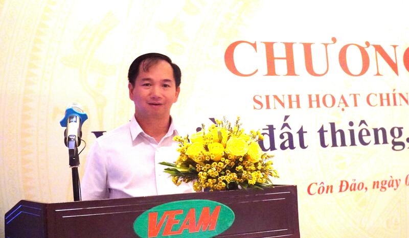 Ông Đỗ Hoài Nam – Trưởng ban Tuyên giáo và Dân vận đặc khu Côn Đảo chia sẻ tại buổi sinh hoạt chuyên đề. Ảnh: Thu Hường