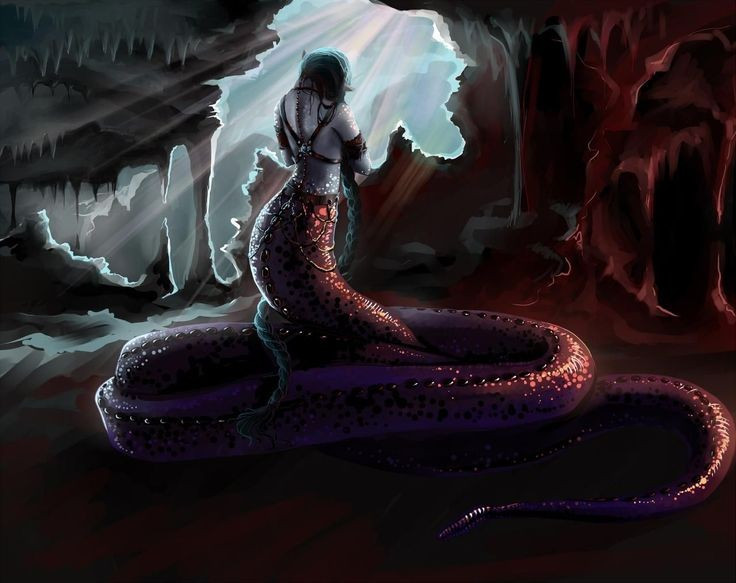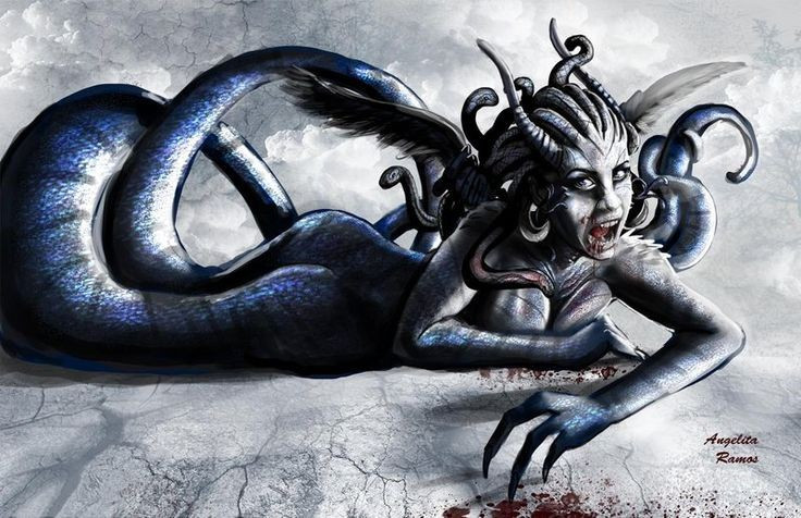 Hình dạng nửa người nửa rắn. Echidna có phần trên là phụ nữ xinh đẹp, phần dưới là thân rắn khổng lồ – biểu tượng cho sự pha trộn giữa cái đẹp và hiểm họa. Ảnh: Pinterest.