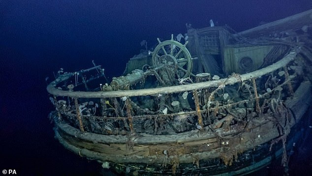 Xác tàu Endurance đã được các chuyên gia tìm thấy ở biển Weddell tại Nam Cực vào năm 2022. Con tàu này do nhà thám hiểm huyền thoại người Ireland gốc Anh Ernest Shackleton chỉ huy. Đoàn thám hiểm thực hiện chuyến thám hiểm Nam Cực vào năm 1914 bằng con tàu Endurance. Ảnh: Jonathan Chadwick/Mail Online.