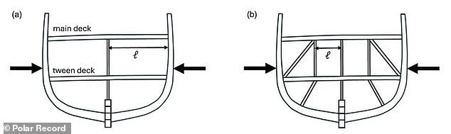 Tàu Endurance thiếu một bộ khung cấu trúc vững chắc và không bao giờ được trang bị đầy đủ để chịu được áp lực khổng lồ của lớp băng dày. Ảnh: Polar Record.