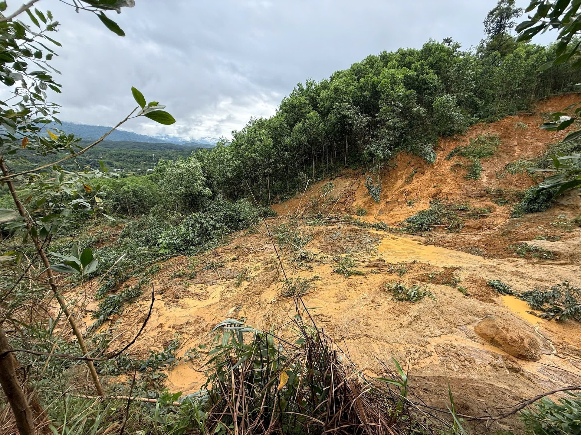 Hiện trường quả đồi xuất hiện vết nứt và sạt lở nghiêm trọng tại thôn Đắc Rích, xã La Dêê.