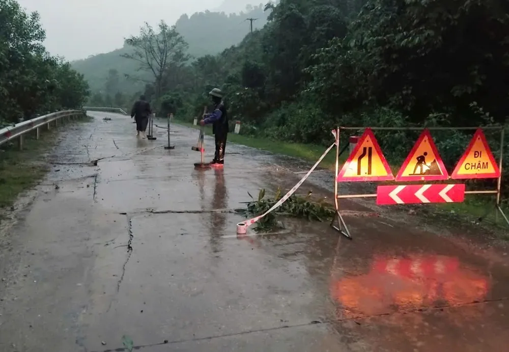 Theo đó, lực lượng chức năng phát hiện đường Hồ Chí Minh nhánh Tây đoạn qua bản Đá Chát có vết nứt kéo dài khoảng 40m, sâu 22cm, khe hở rộng, trong đó khe hở chỗ rộng nhất lên đến 15cm.