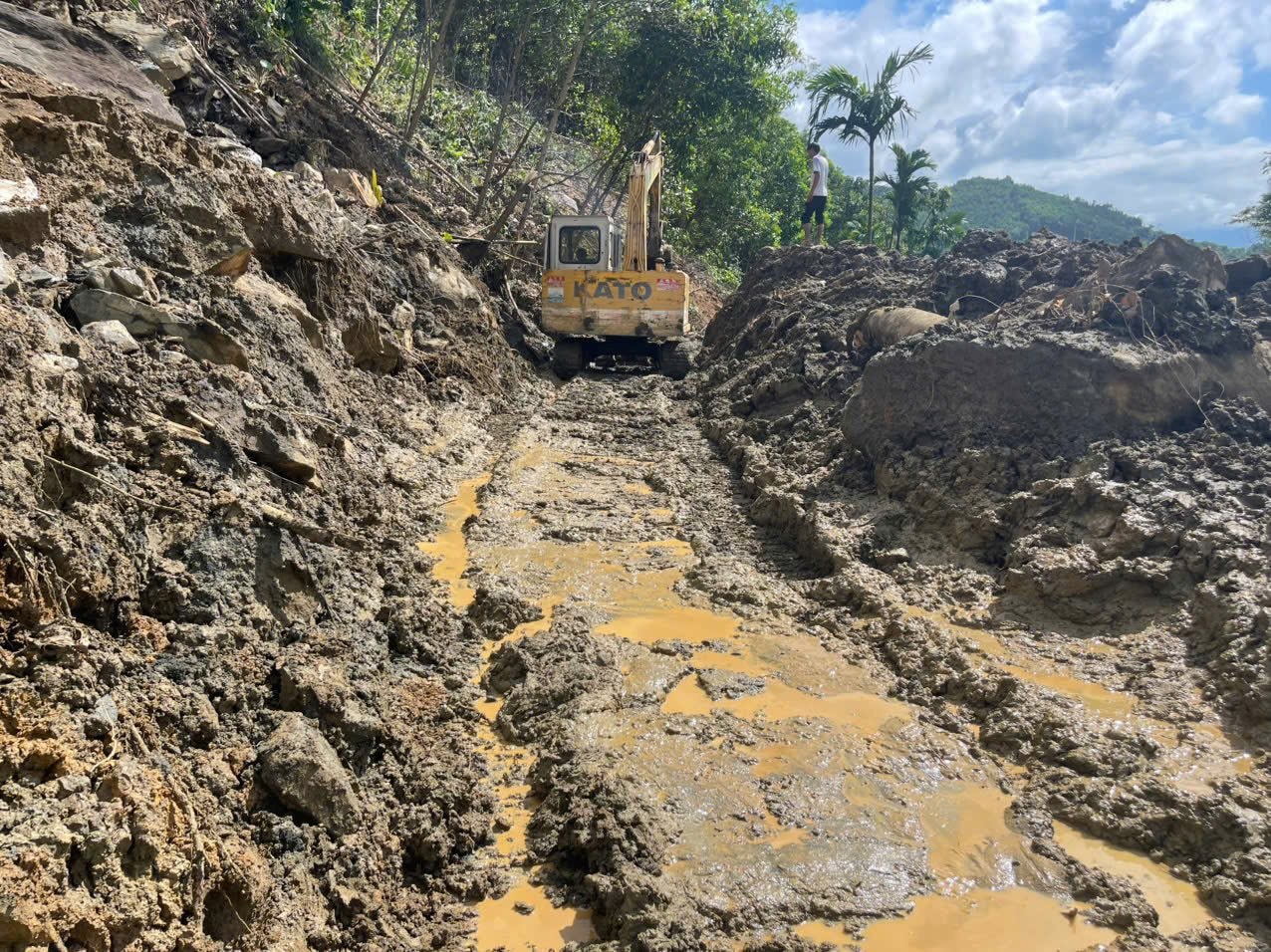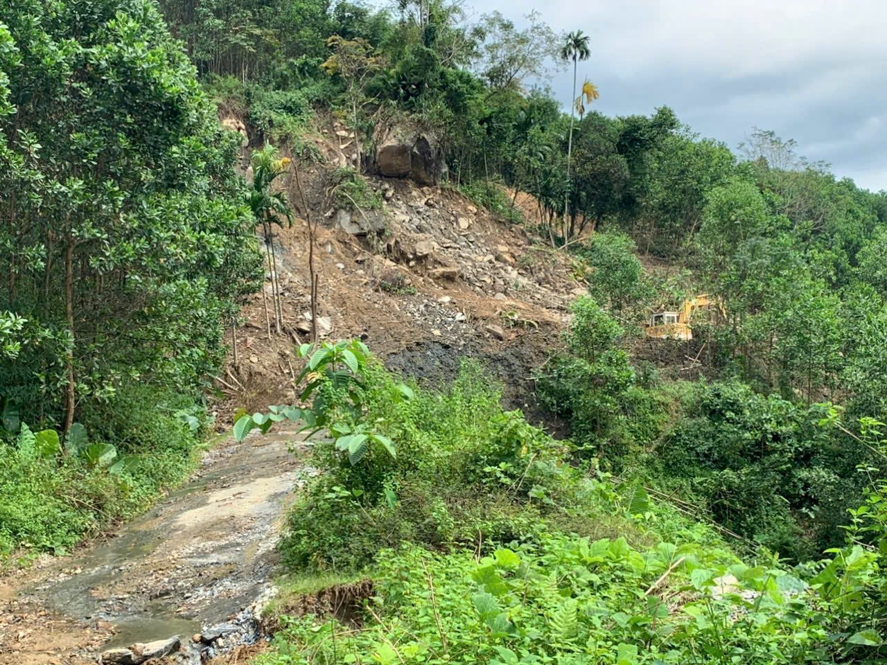 Tuy nhiên, trong lúc khai thông một điểm sạt lở vào sáng 13/11, đội thi công phát hiện vết nứt kéo dài trên sườn đồi gần ngã ba đường lên nóc Xa Rơ (thôn 8).