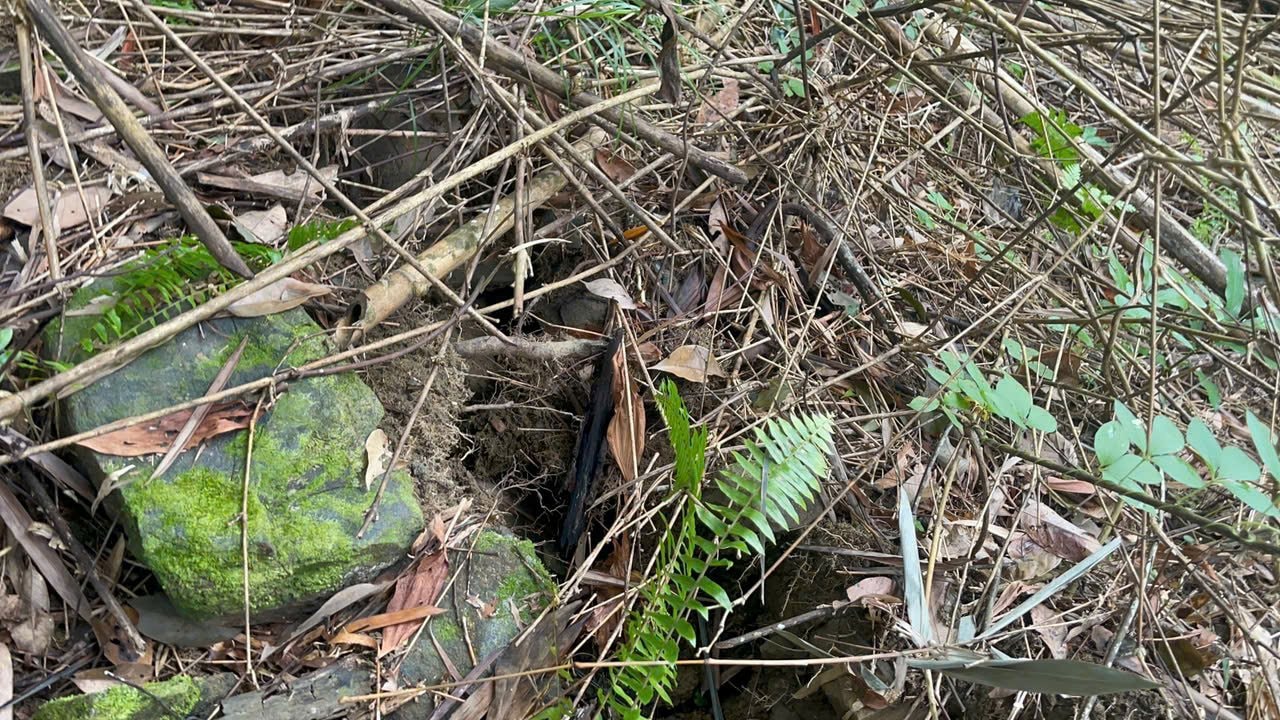 Tuyến ĐH8 qua xã Trà Đốc xuất hiện vết nứt lớn trên sườn đồi.(Ảnh UBND xã Trà Đốc).