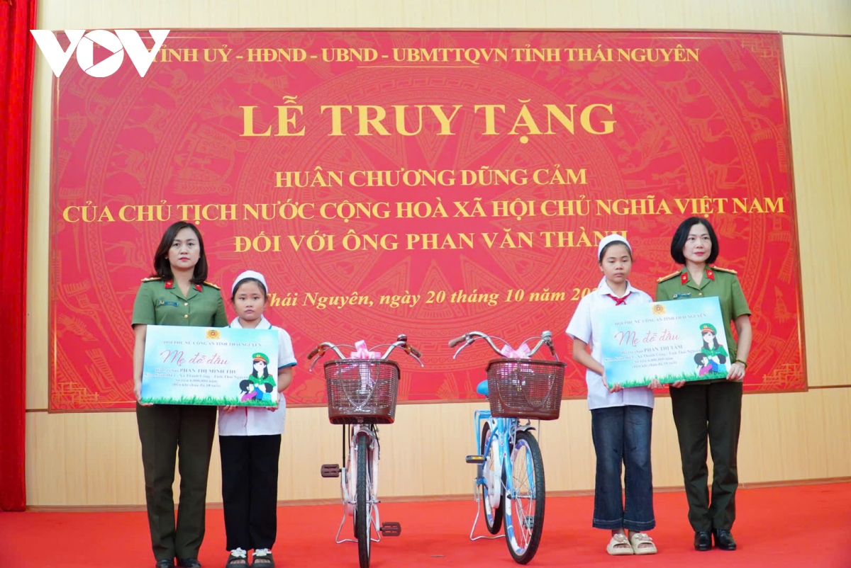 Dịp này, tỉnh Thái Nguyên đã hỗ trợ gia đình ông Phan Văn Thành 50 triệu đồng; Quỹ nghĩa tình đồng đội Công an nhân dân tặng 20 triệu đồng; Công an tỉnh Thái Nguyên trao tặng Sổ tiết kiệm trị giá 500 triệu đồng; Hội phụ nữ Công an tỉnh nhận làm “Mẹ đỡ đầu” và tặng quà cho 2 con gái ông Thành, góp phần hỗ trợ gia đình vượt qua khó khăn, ổn định cuộc sống.