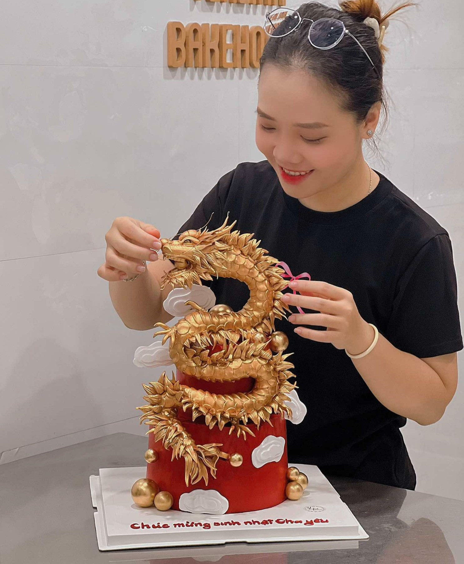Không chỉ làm ra những chiếc bánh ngon, Linh còn đặt tâm huyết vào nghệ thuật trang trí bánh. Một trong những tác phẩm đặc biệt nhất của Linh chính là chiếc bánh hình rồng - một sản phẩm công phu, tỉ mỉ và sáng tạo.