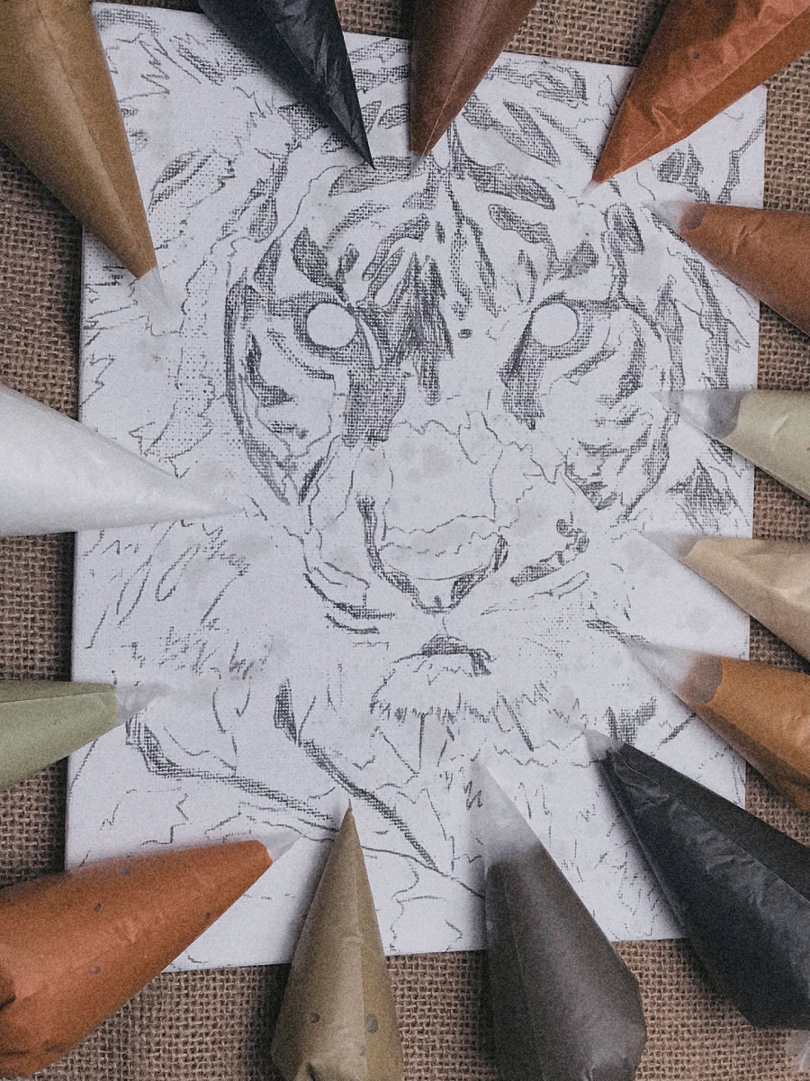 Để làm được bánh hình rồng, ban đầu, Linh luyện vẽ và tạo hình trên giấy canvas bằng hỗn hợp đường cùng lòng trắng trứng.