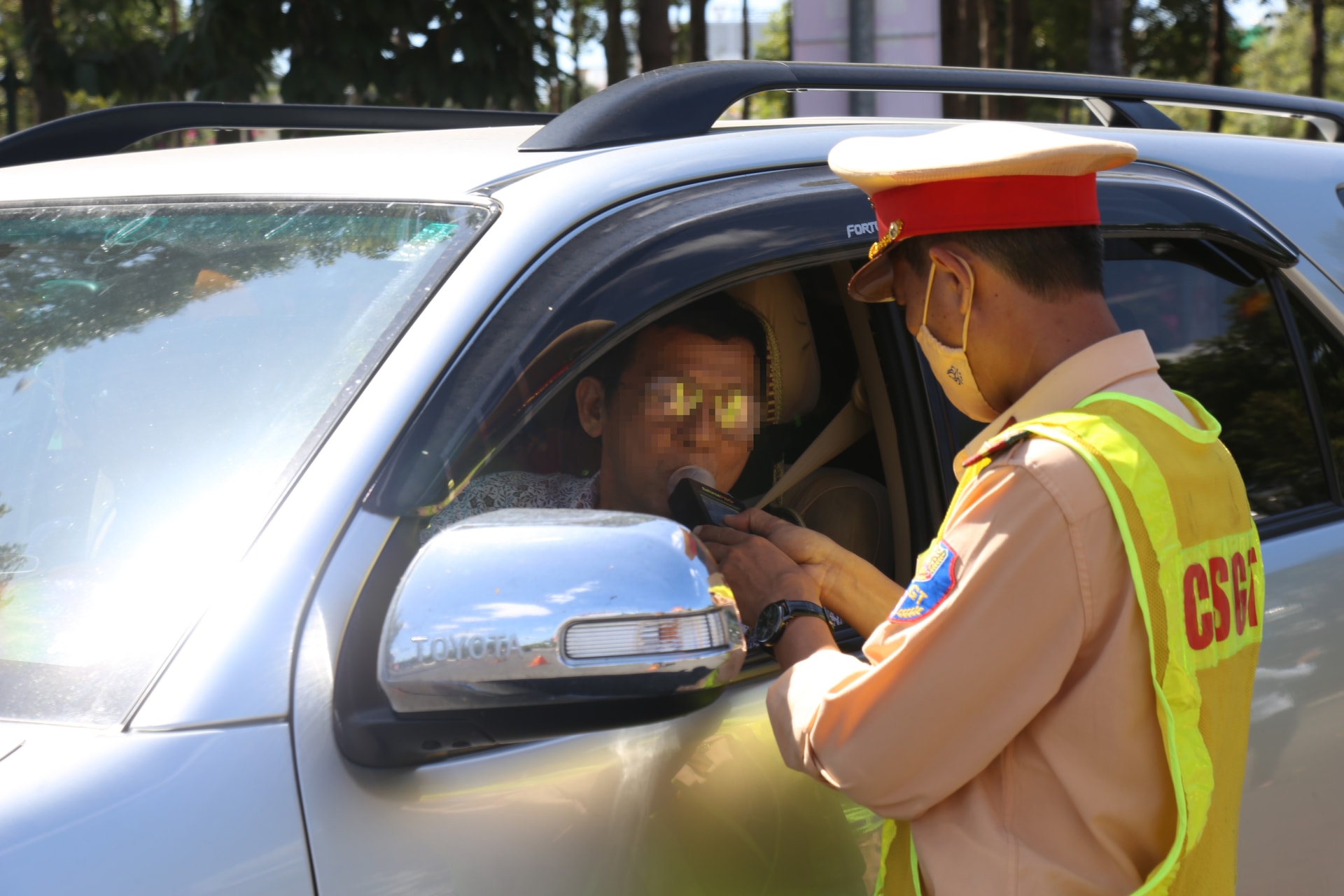 Việc kiểm tra nồng độ cồn cũng tiến hành với người thực hiện dịch vụ xe công nghệ