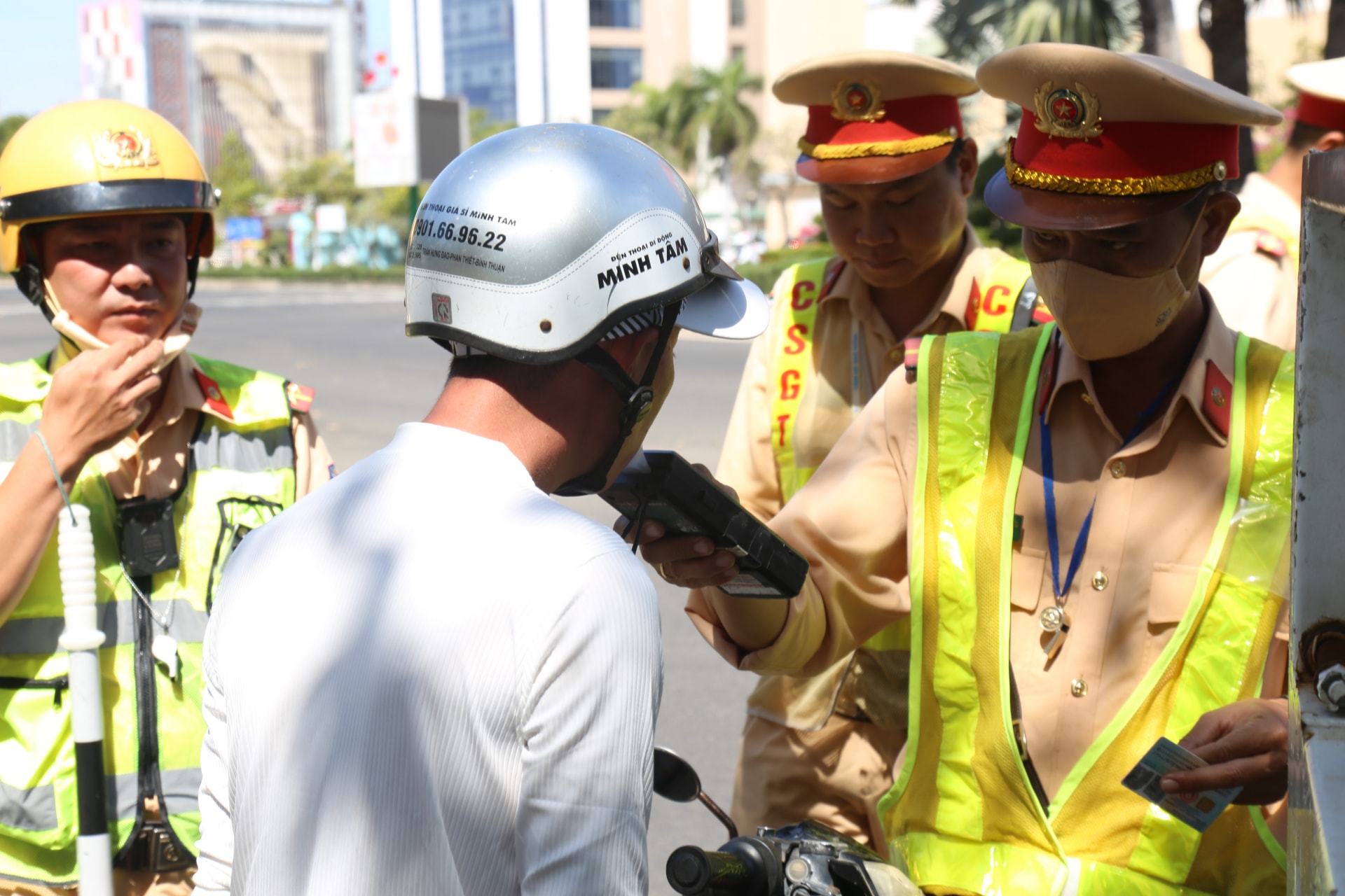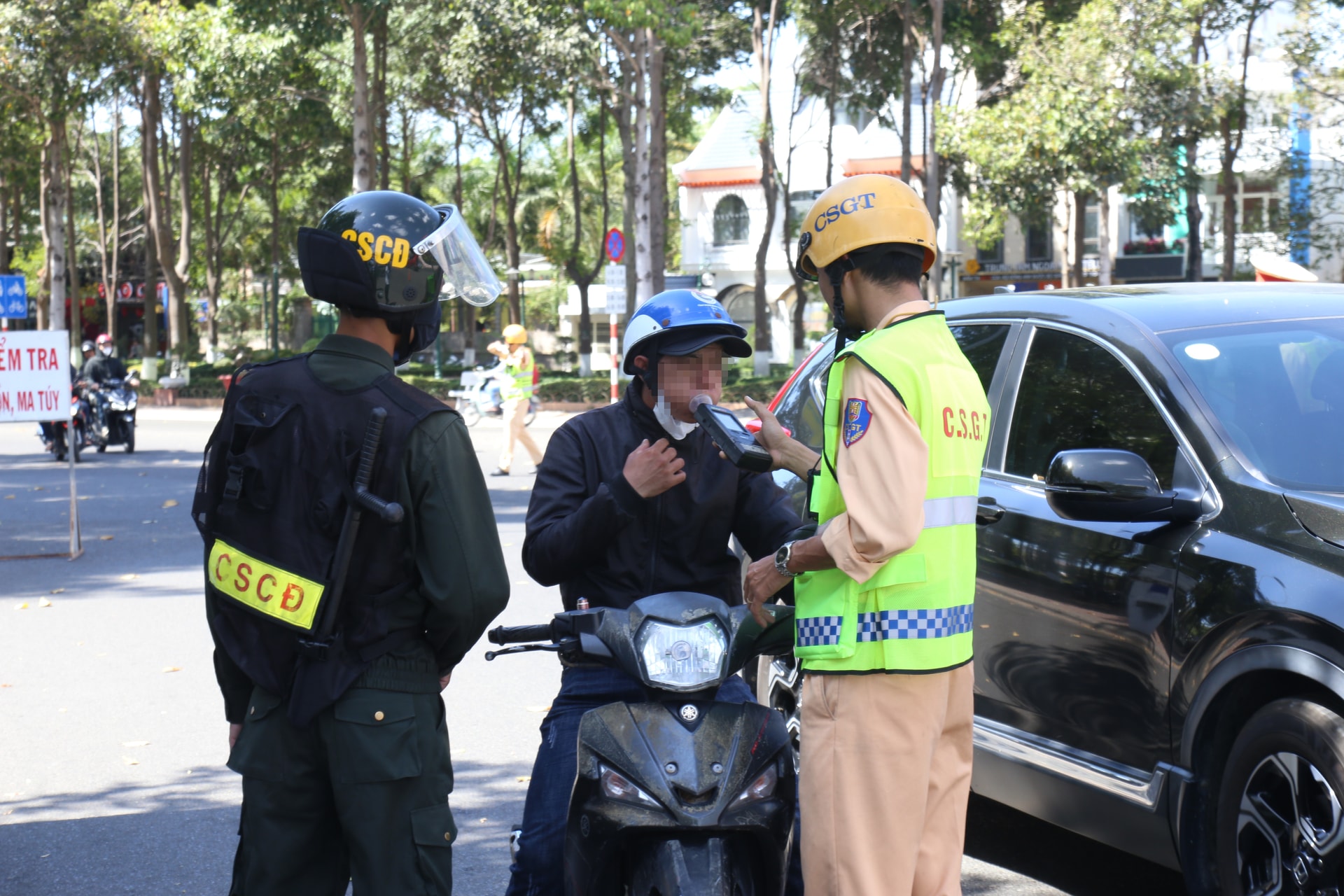 Việc kiểm tra nồng độ cồn được thực hiện ngẫu nhiên với người đi xe máy