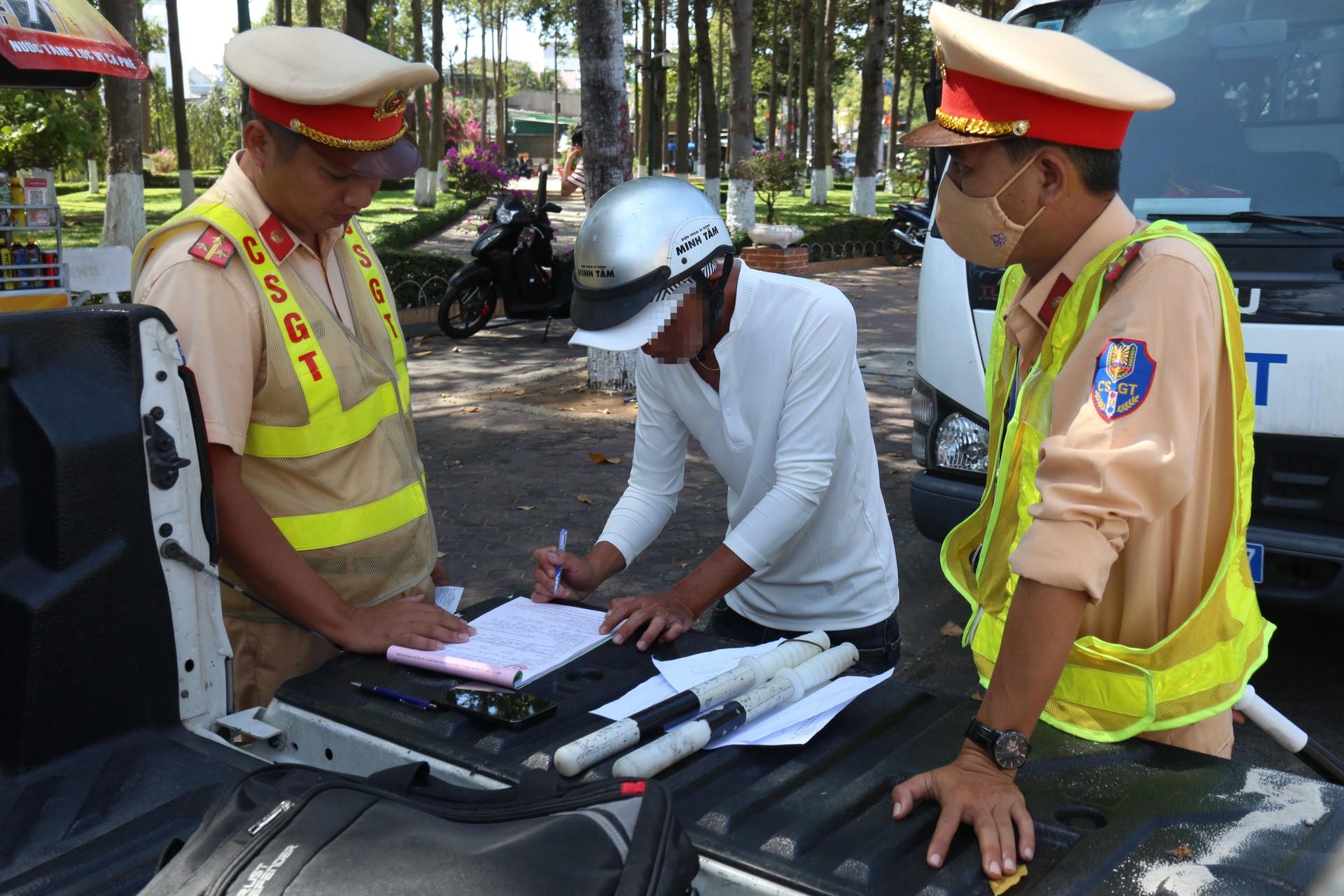 Trong ca trực ngày mùng 1, lực lượng CSGT làm việc với tinh thần nghiêm túc và “không có vùng cấm, không có ngoại lệ”. Các trường hợp vi phạm đều bị lập biên bản xử lý theo đúng quy định của pháp luật. Cùng với xử phạt, cán bộ, chiến sĩ còn kết hợp tuyên truyền, nhắc nhở người dân nâng cao ý thức, xây dựng văn hóa giao thông an toàn, văn minh.