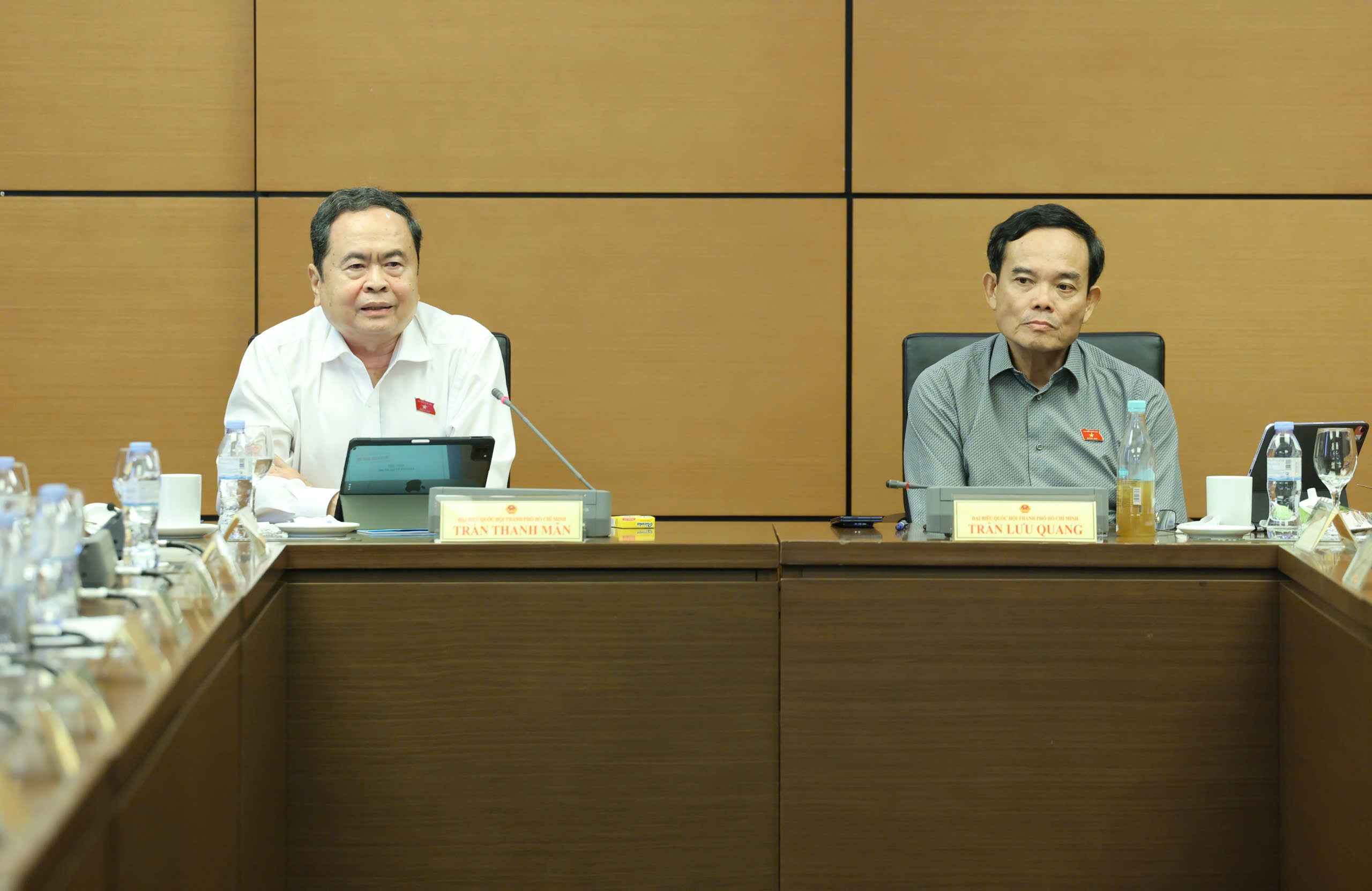 Chủ tịch Quốc hội Trần Thanh Mẫn và Bí thư Thành ủy TPHCM Trần Lưu Quang cùng chủ trì buổi thảo luận tổ về kinh tế - xã hội. Ảnh: QUANG PHÚC