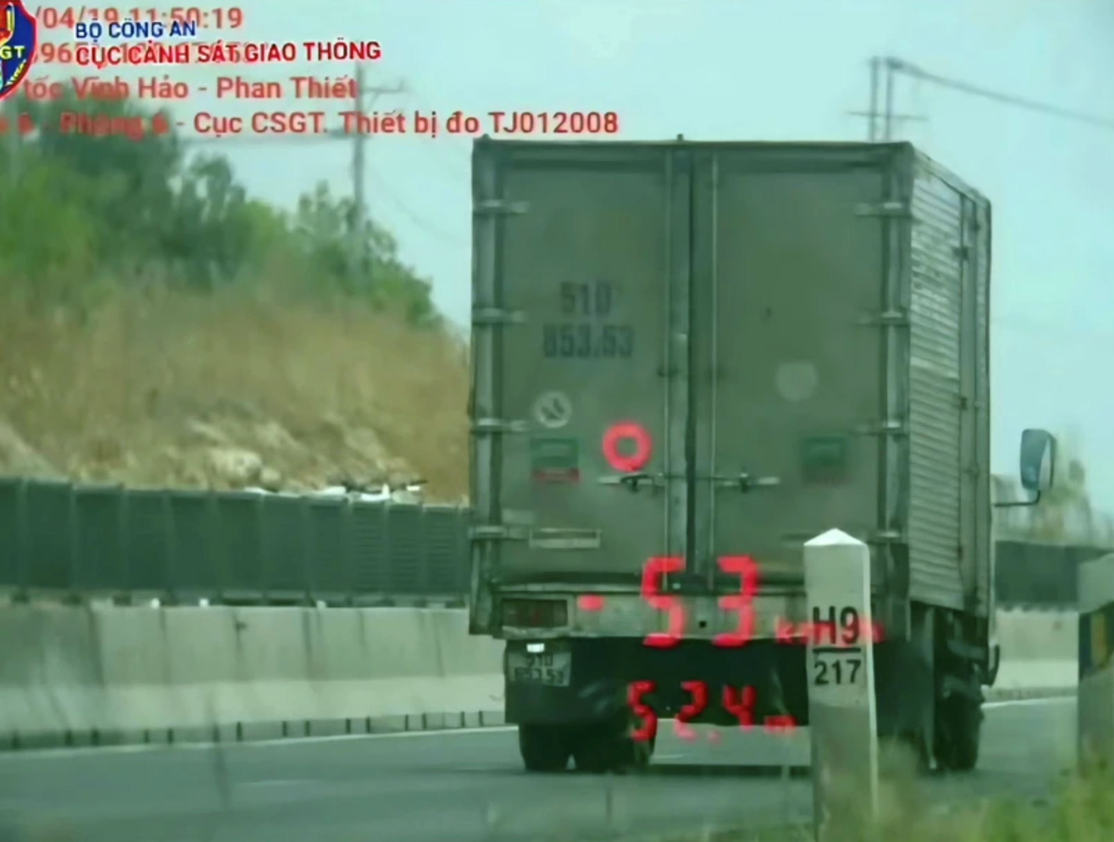 Thời điểm này phương tiện này lưu thông trên cao tốc Vĩnh Hảo – Phan Thiết, đoạn qua xã Hàm Thuận Bắc (tỉnh Lâm Đồng) với tốc độ chỉ 53km/giờ, thấp hơn mức tối thiểu 60 km/giờ theo quy định.