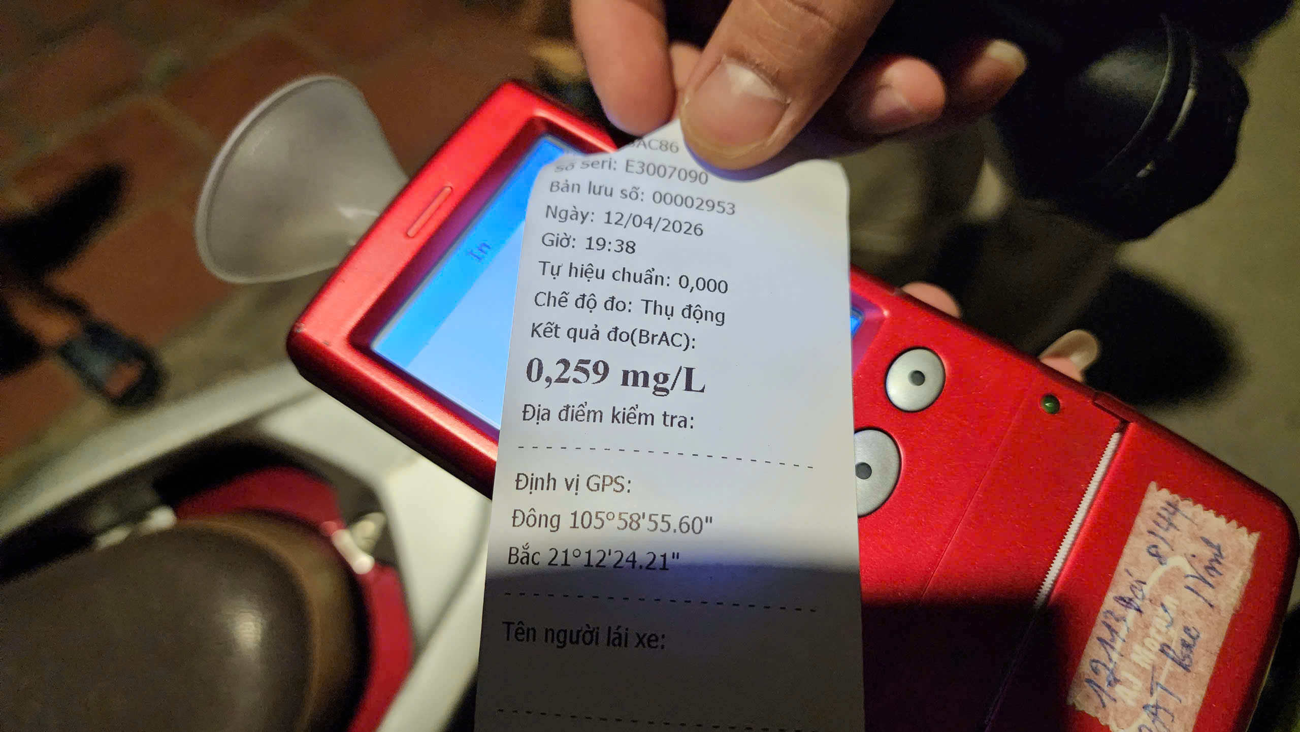 Cụ thể, khoảng 19h35 tổ công tác phát hiện anh K.V.T điều khiển xe máy BKS 99D1 - 400.XX có biểu hiện nghi vấn nên ra tín hiệu dừng xe, kiểm tra nồng độ cồn.