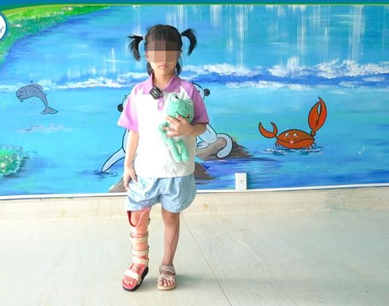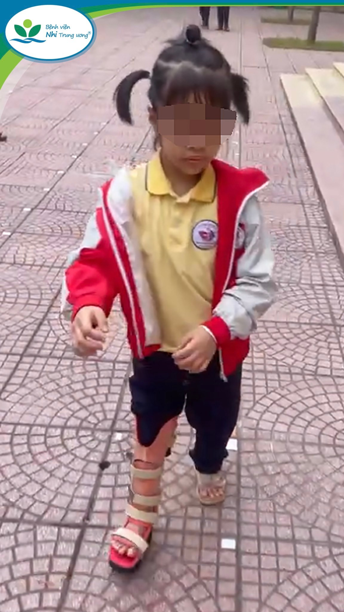 Giữa hành lang bệnh viện, cô bé 7 tuổi từng phải mang nẹp, bó bột, giờ đã tự tin sải bước - Ảnh BVCC