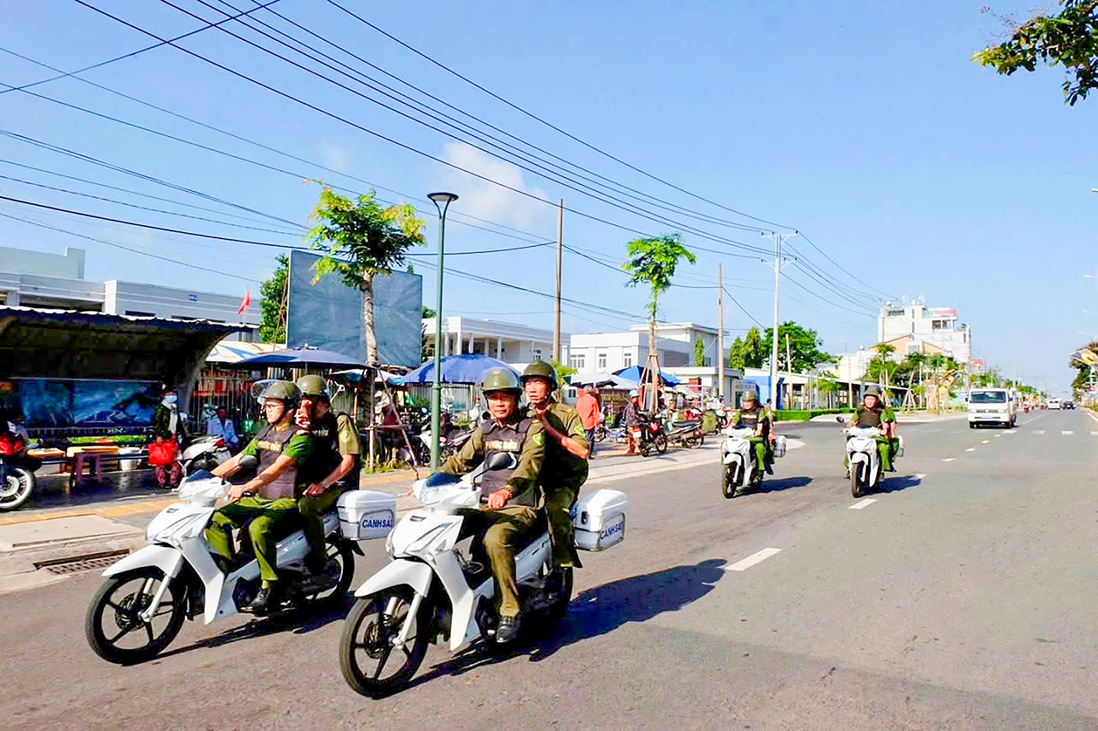 Công an và Bảo vệ an ninh trật tự xã Hồ Tràm tuần tra tại các tuyến đường nông thôn