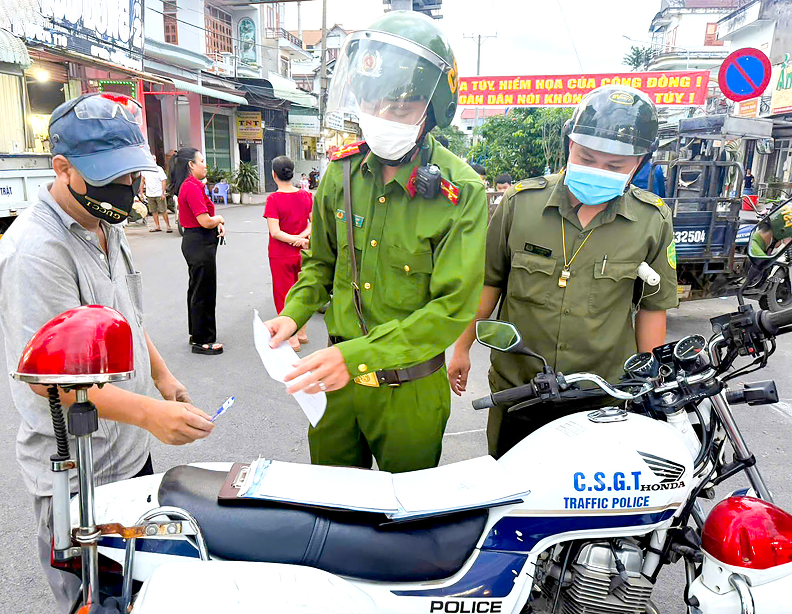 Công an phường Bình Hòa ra quân tuần tra, xử lý các trường hợp vi phạm trật tự an toàn giao thông trên địa bàn