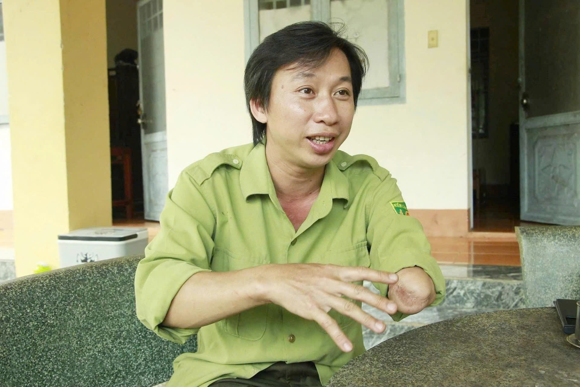 Anh Dương Quang Hùng kể lại câu chuyện về nhóm lâm tặc “xin nhầm” một cánh tay cách nay 17 năm- Ảnh: Hoàng Bắc