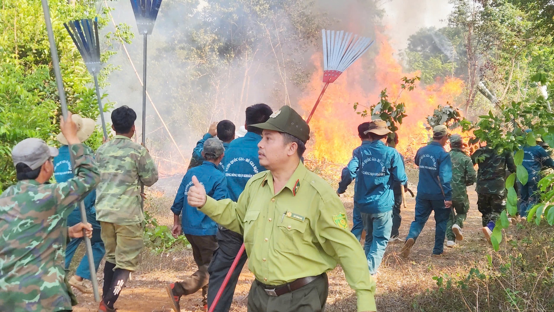 Kiểm lâm Hạt Kiểm lâm rừng đặc dụng thuộc Vườn quốc gia Bù Gia Mập diễn tập chữa cháy rừng mùa khô năm 2025-2026. Ảnh: Hoàng Bắc