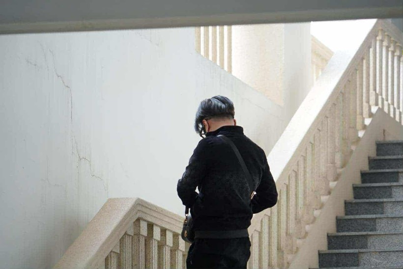 Nam ca sĩ liên tục né tránh ống kính của phóng viên. Ảnh: A.Q.