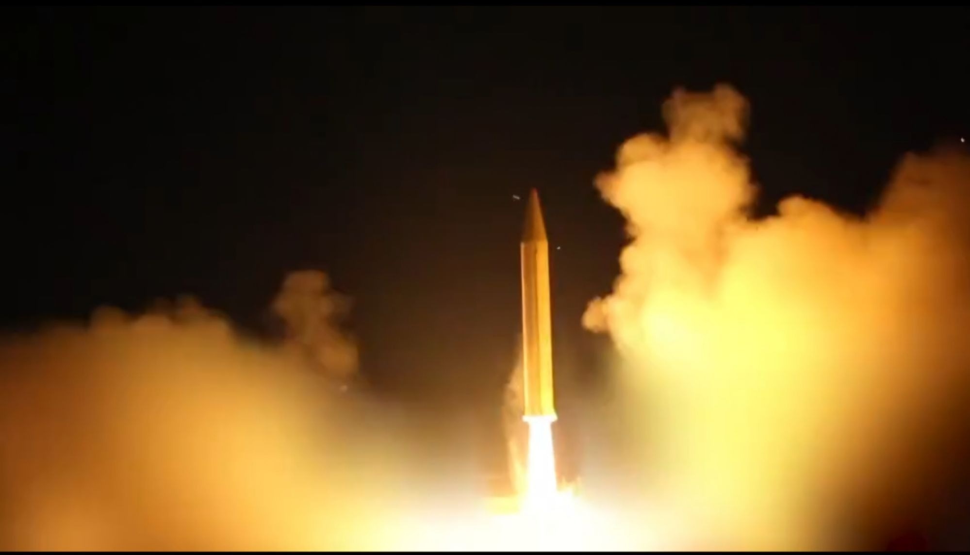 Tên lửa đạn đạo Iran (được cho là Khorramshahr-4) rời bệ phóng. Ảnh X