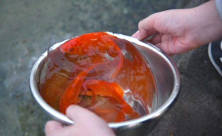 Thả cá chép để tiễn đưa ông Táo về trời, cầu mong năm mới bình an, thuận lợi. (Ảnh: Viên Minh)