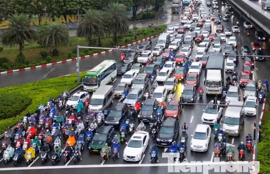 · Ở Hà Nội, chỉ mưa nhỏ cũng có thể gây tắc đường do nhiều yếu tố cộng dồn.